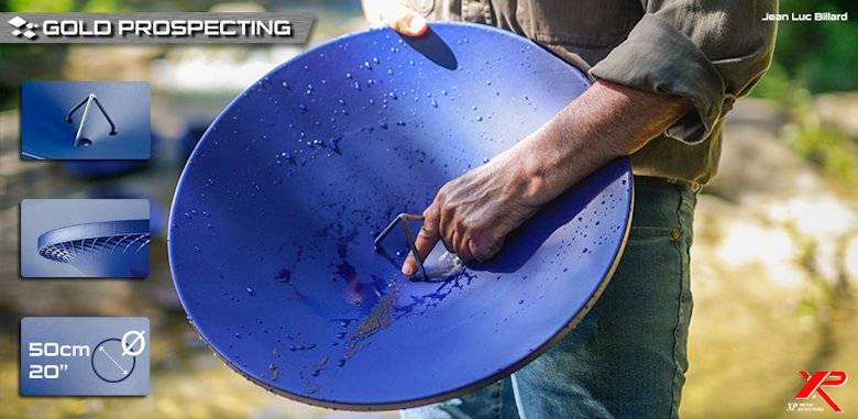 Complementing yellow, the blue pan design provides the best contrast to gold. The blue XP color helps to better identify gold in the pan: